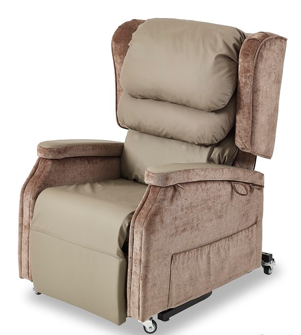CHAIR,Recliner,Configura, Comfort,Small, 2 Motor, Tilt-in-Space, Interchangeable backrest options - adjustable pillow backrests, lateral supports and adjustale lateral supports, Vapour Permeable Seat and Backrest, Easy to use handset, Pressure Care Seating Options KEY FEATURES: -SEAT HEIGHT (A) 406 mm (16”) -SEAT HEIGHT WITH HAKS (A) 457 mm (18”) -SEAT WIDTH (B) 457 mm (18”) -SEAT DEPTH POSITION 1 (C) 457 mm (18”) -SEAT DEPTH POSITION 2 (C) 508 mm (20”) -ARMREST HEIGHT (D) 180 mm (7”) -OVERALL WIDTH (E) 760 mm (30”) -OVERALL HEIGHT – UPRIGHT (F) 1050 mm (41”)