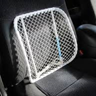 Contoured backrest made of a tubular steel frame and nylon mesh.